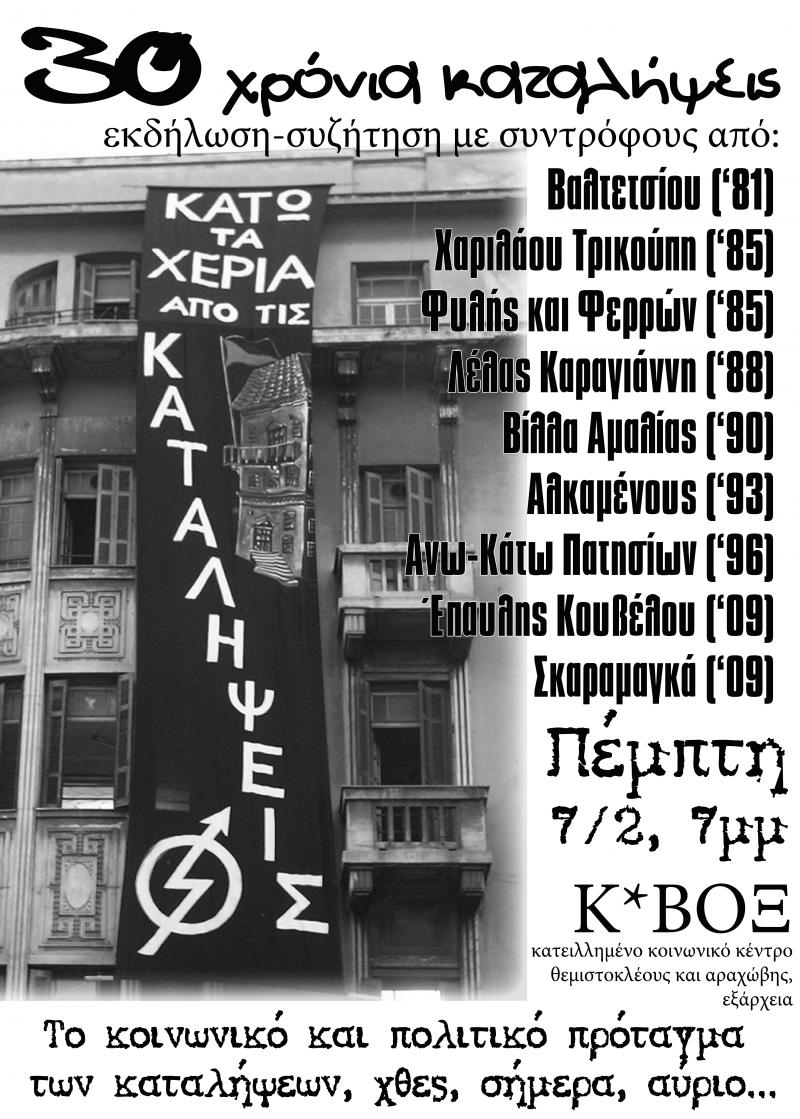 Ηχογράφηση της εκδήλωσης “30 χρόνια καταλήψεις”, συζήτηση με συντρόφους από καταλήψεις της Αθήνας.
