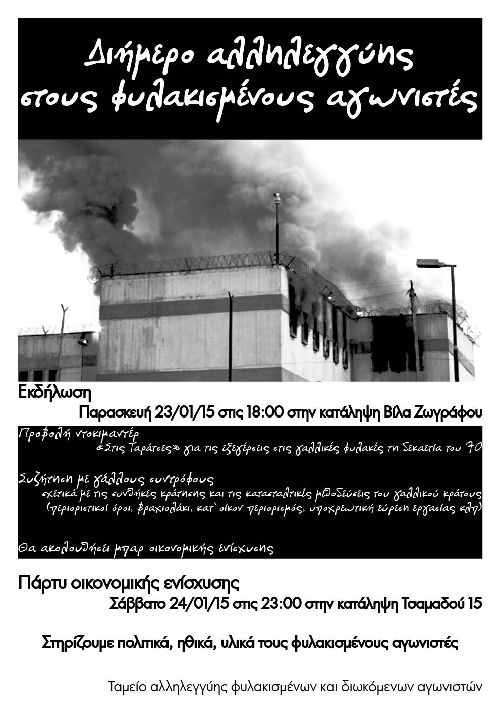 Η συζήτηση πραγματοποιήθηκε στις 23 Γενάρη 2015 στην κατάληψη Βίλα Ζωγράφου στην Αθήνα, στο πλαίσιο διημέρου αλληλεγγύης στους φυλακισμένους αγωνιστές και οργανώθηκε από το Ταμείο αλληλεγγύης φυλακισμένων και διωκόμενων αγωνιστών: https://www.kinimatorama.net/event/47327